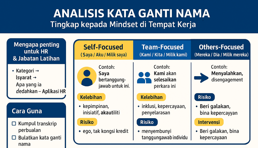 Dengan menganalisis kata ganti nama, pihak HR dan Jabatan Latihan boleh memahami cara pekerja membingkai pemilikan kerja mereka: